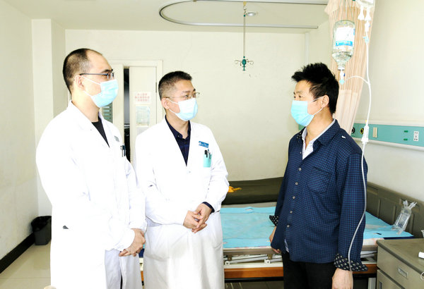 李元春副主任医师、佟松副主任医师与路女士爱人亲切交流