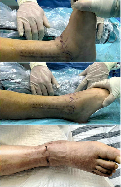 54岁的刘女士4个月前因骑车摔伤导致右内踝骨折伴踝关节脱位、右腓骨远端骨折,伤后于当地医院行手术治疗,现右腓骨骨折术后骨不连、右踝关节僵硬,右踝关节背伸约10°,跖屈约20°,因踝关节活动受限严重影响正常生活。