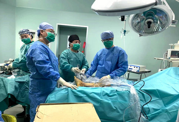 3月1日,骨外科二病区李宝权副主任带领团队成功完成了院内首例踝关节镜下踝关节探查、清理、松解术和腓骨内固定物取出、髂骨取骨、腓骨植骨内固定术,为刘女士活动严重受限的踝关节顺利松绑,恢复正常生活,实现了医院微创技术的再创新。