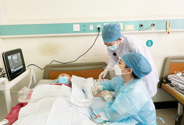 静疗专科护士为患者行PICC静脉置管术