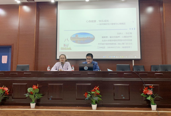 精神卫生中心心理门诊主任孙正海副教授(右二)作讲座