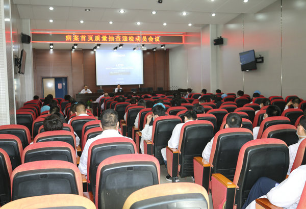 4月28日下午,我院在住培基地多功能厅召开了病案首页质量抽查迎检动员会议。副院长鲍红光出席会议并讲话,医务部主任于海明主持会议,病案室主任兰涛作培训,全院临床科室主任、副主任及质控员参会。