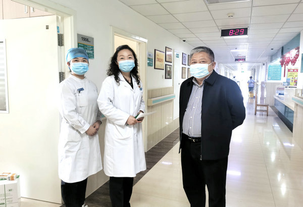 党委书记丁国旭与坚守工作岗位的医护人员亲切交流