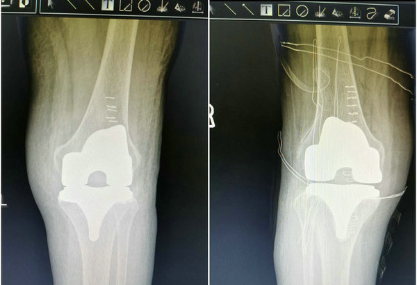 吴大娘患类风湿性关节炎18年,平素双膝关节疼痛,肢体活动障碍,四处求医,吃过很多药物也未见明显好转,近三年只能半蹲鸭步行走,为求得手术治疗,慕名来到我院骨外一科。入院以后,乔主任详细的询问病史、查体、阅读MRI片后,为患者制定了膝关节表面置换术手术方案,由于患者体质较弱,考虑如果双侧膝关节同时置换,会增加手术创伤,增加患者手术感染的几率,乔主任和他的医师团队,思虑再三,最终决定双侧关节分次做。术中,乔主任发现吴大娘膝关节表面软骨破坏严重,骨质疏松极为严重,加之术中各种突发状况,这给手术增加了很多的难度,但都被乔主任和他的团队一一攻破,术后回到病室的吴大娘各项生命体征平稳,患者和家属非常满意,向医生们竖起了大拇指。