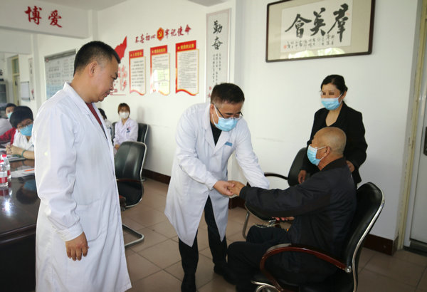 神经内科四病区主任金宏伟、神经内科六病区主任王岩为患者查体