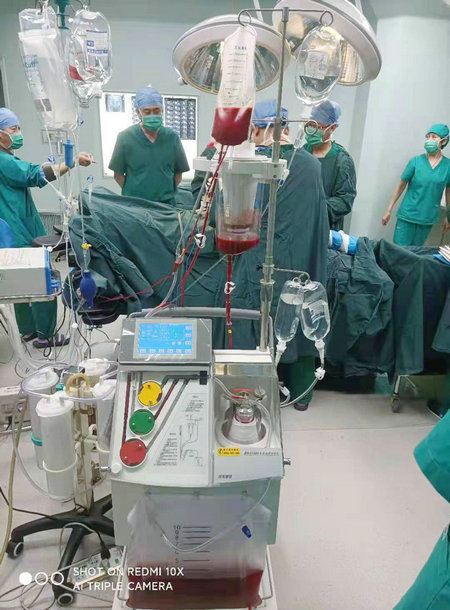 近期,在骨外科三病区和麻醉科手术室的共同努力下,我院首次成功开展应用术中血液自体回输技术,手术全程共过滤出453毫升自体血液回输到患者体内,效果满意。