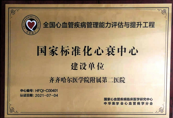 国家标准化化心衰中心建设单位牌匾