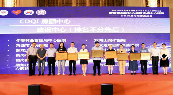 黑龙江省CDQI联盟启动会于2021年7月4日在哈尔滨市隆重召开,黑龙江省卫健委副主任葛洪、CDQI主任委员马长生教授、CDQI副主任委员于波教授、CDQI秘书长李悦教授,以及黑龙江省CDQI联盟各中心负责人等领导和专家出席启动仪式并授牌,经过项目组初审、专家委员会会评,我院被评定为国家标准化房颤中心、胸痛中心、高血压中心、心衰中心建设单位,心血管内科六病区主任王艳丽教授参会并上台领取牌匾。