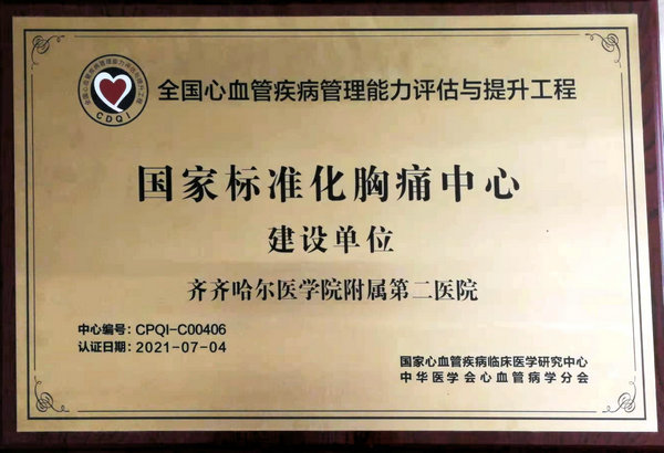 国家标准化胸痛中心建设单位牌匾