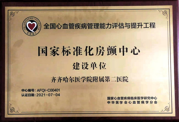 国家标准化房颤中心建设单位牌匾