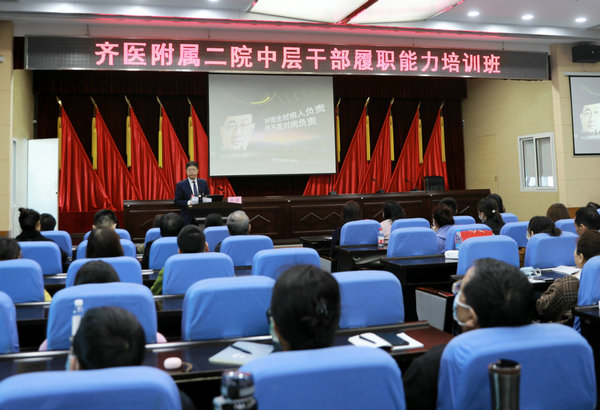 4月9日,医院党委在新一届中层干部刚刚换届调整完成之际,为快速提升新任干部的责任意识和履职能力,特举办了附属二院中层干部履职能力培训班,全院260余名中层干部走进市委党校集中学习充电。培训班邀请市委党校张丽丽教授,中国医师协会、人文医学管理办公室专职培训导师、山东大学齐鲁医学院研究生课程兼职教师沈健博士、著名医疗卫生法律专家张新博博士、中南大学湘雅医学院常务副院长、中欧国际医院管理技术研究院首席专家、外科学博士孙维佳教授、首都医科大学附属北京朝阳医院总会计师、原副院长张仁华教授作专题讲座。本次培训是医院党史学习教育的重大实践和重要举措,不仅为更好提升我院中层干部的履职能力奠定了坚实基础、提供了智力支持,更在促进医院发展建设中注入了新思想、新理念和新方略。