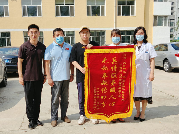 本以为事情已经过去了,没想到刚刚出院的刘女士特意为总务科送来了锦旗,刘女士笑着将一面写有“真情服务暖人心 无私奉献传四方”的锦旗交给总务科同事,以此对我院职工热心为患者办实事的举动表示感谢。