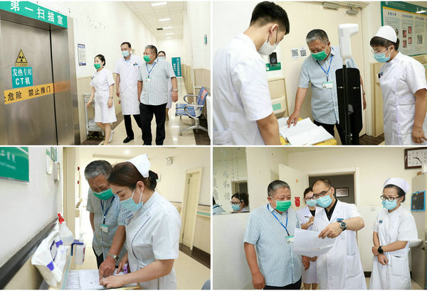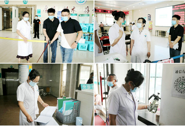 督导排查中,院领导们周密细致查看了门急诊卡口管理、测温流调、预检分诊、环境消杀、防疫四宝、一医一患一诊室、医护人员防护、病区封闭管理、消防安全等工作,同时要求全体职工要高度重视疫情防控工作,杜绝麻痹思想、厌战情绪和侥幸心理,进一步强化措施、压实责任、排查风险、堵塞漏洞、做好防护,发挥好卡口和哨点作用。