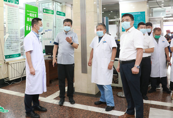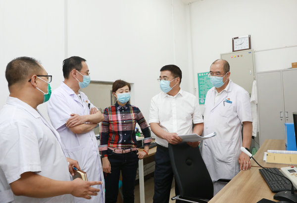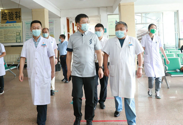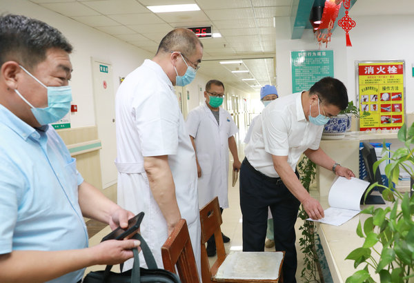 8月2日下午,齐医学院院长方传龙、院办主任王彬、医管处处长李春旭、学生工作部部长马倩等一行6人,莅临附属二院检查督导疫情防控工作,附属二院党委书记丁国旭、院长、党委副书记武立刚、副院长鲍红光、刘晖、赵玉环、纪委书记李亚洲及相关职能科室负责人陪同检查。