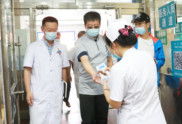 方传龙院长等实地走访查看了门急诊、发热门诊、病房、检验科等诊疗场所,对我院疫情防控的风险排查、预检分诊、预约挂号、病区消毒隔离、陪护探视等制度措施,进行了深入细致的检查督导,了解体验了扫码、测温、登记、流行病学调查、预检分诊、病人管理及核酸检测等疫情防控管理工作。督导组一边检查督导,一边与丁国旭书记、武立刚院长等进行深入探讨交流,在充分肯定我院疫情防控工作基础上,提出了指导性建议和意见。