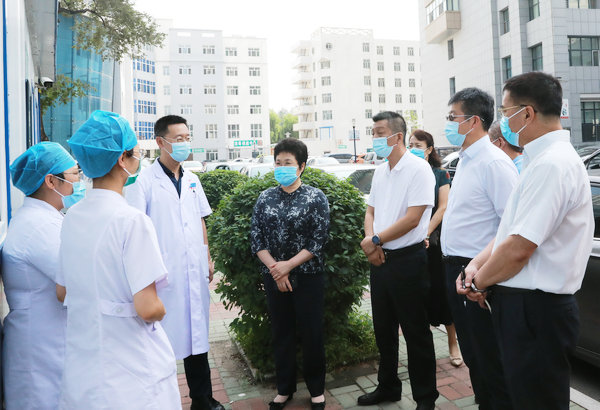 8月6日下午,市一级巡视员刘艳芳在市卫健委党组书记、主任刘锋、齐齐哈尔医学院院长方传龙、副院长毕红霞、医院管理处处长李春旭等陪同下,莅临附属二院检查督导疫情防控工作,附属二院院长、党委副书记武立刚、党委书记丁国旭等领导班子成员及相关科室负责人陪同检查。