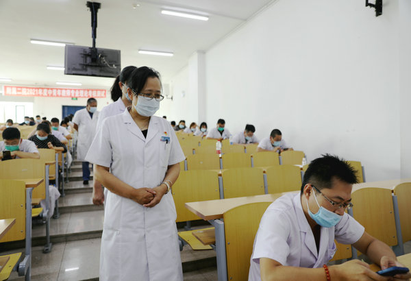 考核期间,监考教师严格考场纪律,考场秩序井然有序,过程顺利,无违规违纪情况发生。院领导多次亲临考核现场检查指导。此次医师“三基三严”考核,医务部联合教务科、住培办精心组织、周密部署,考前制定了详细考试方案,组织教师认真出题,召开考官培训会和考前会议,为顺利完成本次考核任务提供了重要保证。(撰稿:医务科 咸阳 摄像:宣传科 吕唱 李征 编辑:宣传科 高秀文)