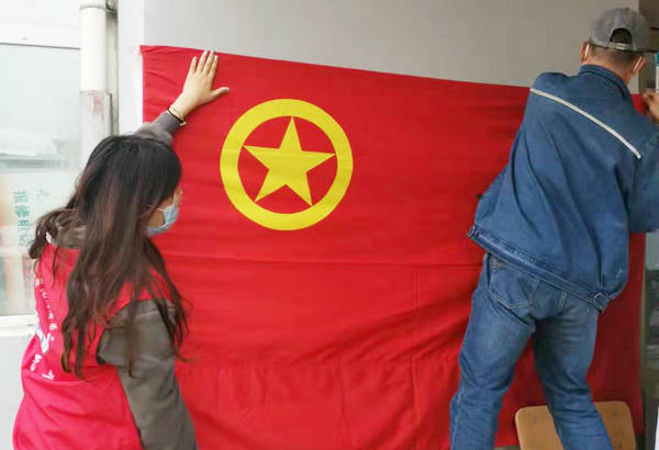 总务科人员悬挂团旗