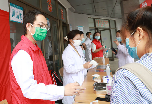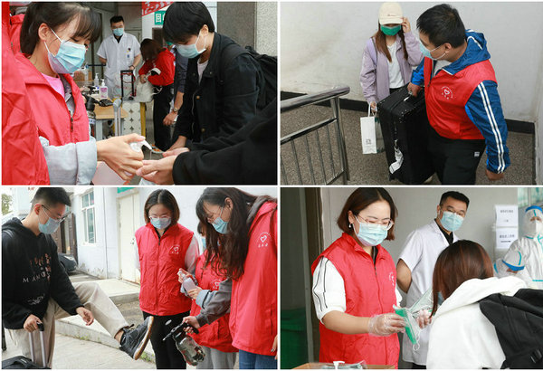 9月9日上午,齐医附属二院团委组织2017级大学生志愿者到学生公寓报到工作点,开展支援服务活动,助力2018级学生返校报到。