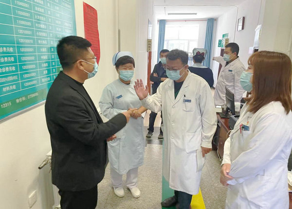走访过程中,李亚洲书记重点查看了门诊挂号收费处、门诊中西药房、住院收费处等服务窗口,并着重强调疫情防控与医疗安全要两手抓、两不误,维持好门诊就医秩序,确保一人一诊一消毒,要落实好值班制度,不脱岗、不空岗,进一步严实工作作风。
