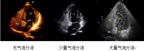 一个特殊的检查—右心声学造影。右心声学造影技术是经外周静脉注入造影剂,根据造影剂气泡的显影情况来协助诊断的检查方法。造影剂气泡直径>10μm,平均约15μm,按照正常途径不能通过肺毛细血管网,不进入左心系统。因此我们可以根据显影顺序、途径和时间对某些结构和血流异常做出诊断和鉴别诊断。如果左右心系统存在异常通道,那么注入造影剂后左心腔会出现不同程度的微泡显影,我们因此能轻松找到异常通道所在,可协助确定有无卵圆孔未闭 、房间隔缺损、肺动静脉瘘、永存左上腔静脉等异常。