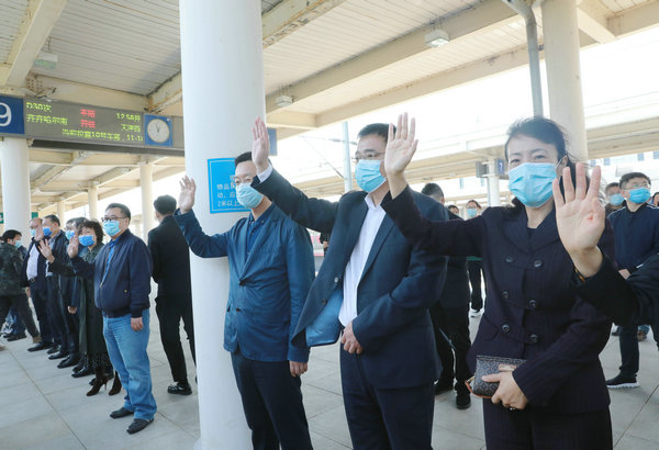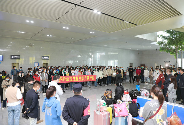 学院及医院领导到齐齐哈尔南站为援巴抗疫医疗队员送行