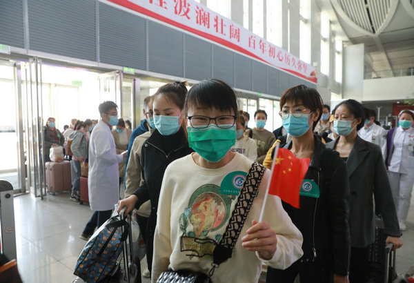 党委书记丁国旭、院长、党委副书记武立刚等领导为医疗队员送行
