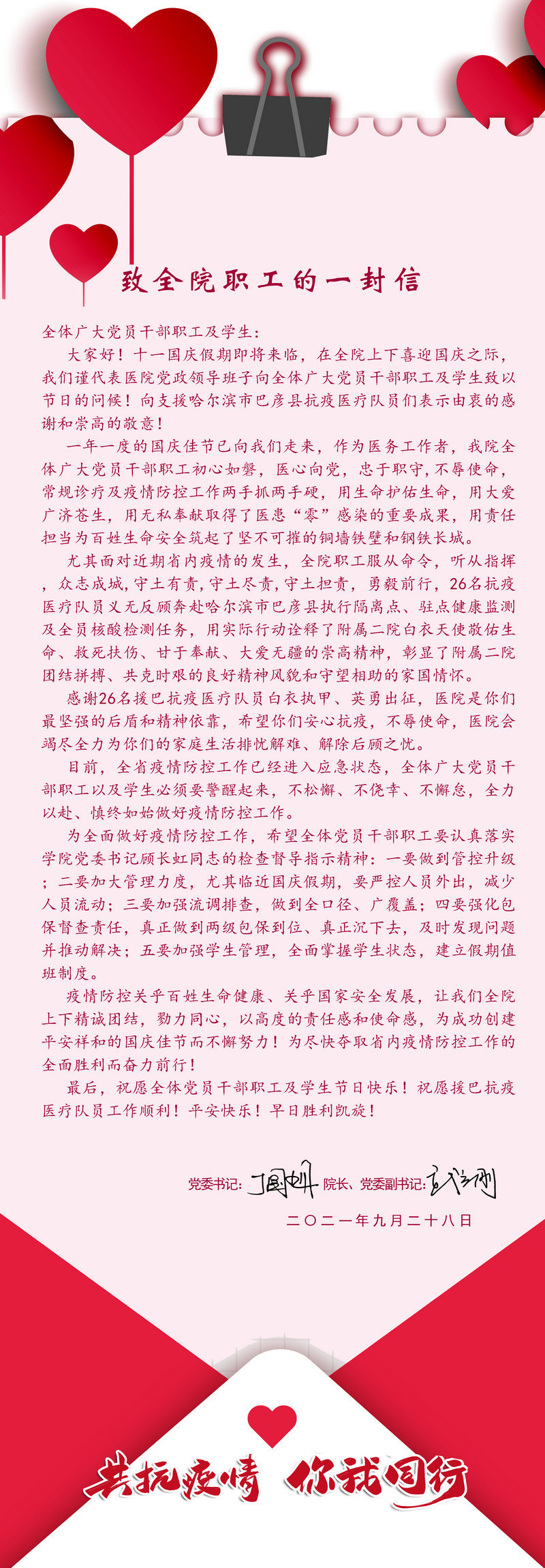 致全院职工的一封信