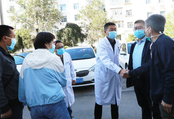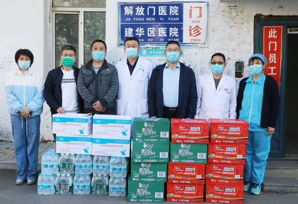 急诊科护士长刘娜等接受外科第三党支部书记、肛肠外科主任周扬捐赠的生活物资
