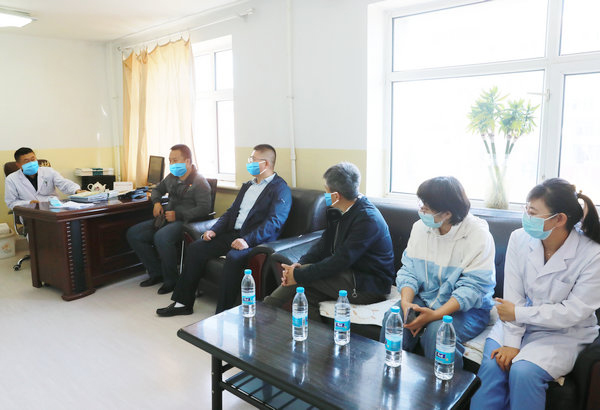 外科第三党支部书记、肛肠外科主任周扬及支部党员与建华区医院院长武传伟沟通交流