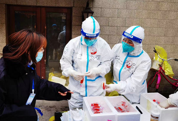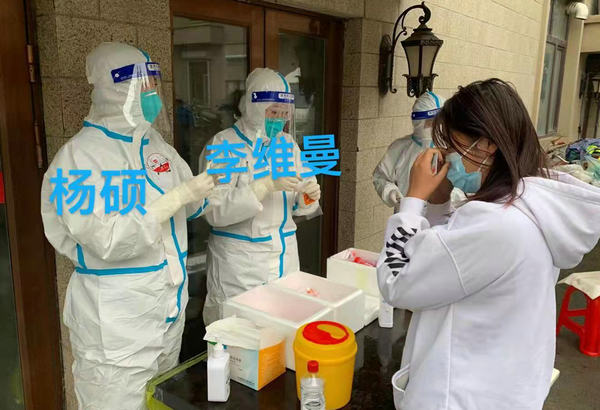 援巴彦医疗队李维曼、赵娜、李重雪、杨硕负责盛隆国际小区核酸采集工作