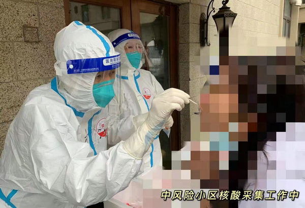 巴彦医疗队员杨硕为中风险小区居民采集核酸