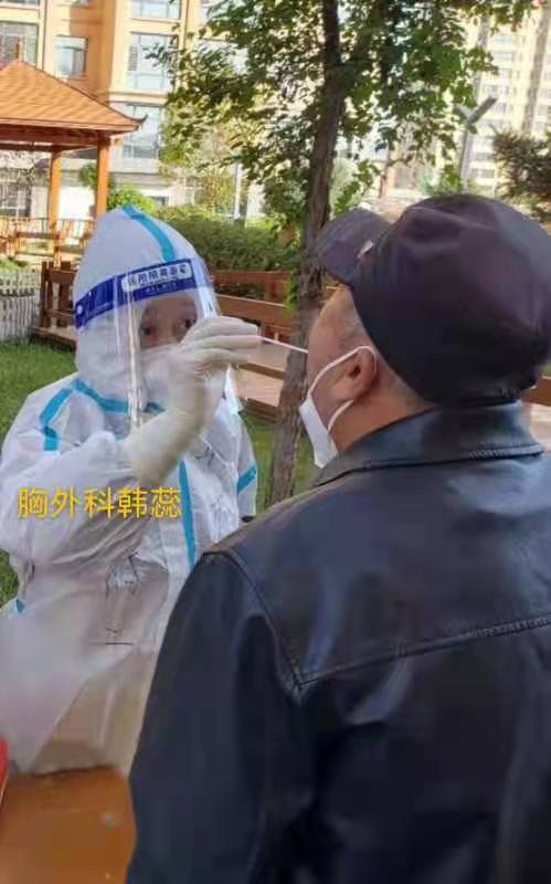 援巴彦医疗队队员韩蕊为巴彦县人民采集核酸