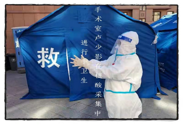 巴彦抗疫医疗队卢少影在核酸采集中进行手卫生