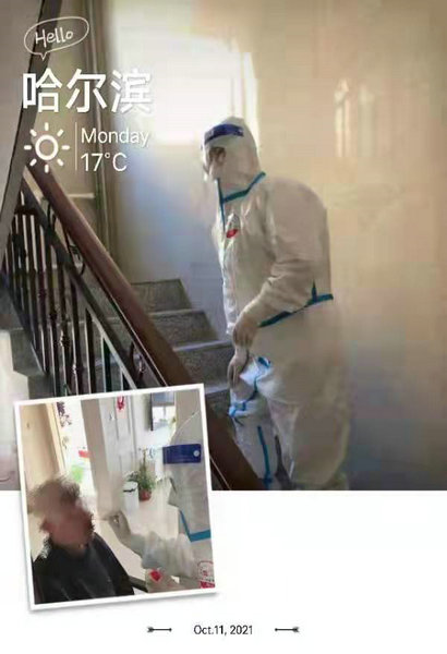 巴彦抗疫医疗队卢少影在为巴彦县人民采集核酸