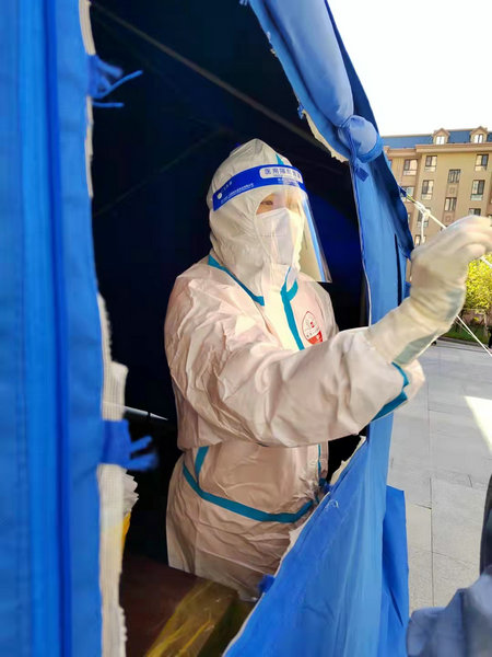 我和队友手术室卢少影一起坚守的小区,前两日已由中风险小区转为低风险小区,每天的核酸采集工作还在继续,每一户居民采核酸时基本都会咨询我们,他们是不是要解封啦,看着他们迫切的眼神,就知道他们对于自由的渴望,我们知道在这最后关头至关紧要不能松懈,告诉他们再坚持一下,我们离胜利不远了!巧合的是同小区里还遇到了来自齐齐哈尔的老乡,看到我是齐齐哈尔支援队的,有种格外的亲切,对我们的工作表示了感谢和认可。在今日采集核酸任务结束后,看到道路两旁的商服开始进行全面的消杀,这也预示着人民的生活步入正轨,指日可待。十字路口的交通信号灯,依然保持着它严肃的红色,好像在这最后关头提醒我们:战疫还未完全取胜,坚持就是胜利!此刻我仿佛看见了闪着倒计时的红灯,车水马龙的道路和熙熙攘攘的人群。