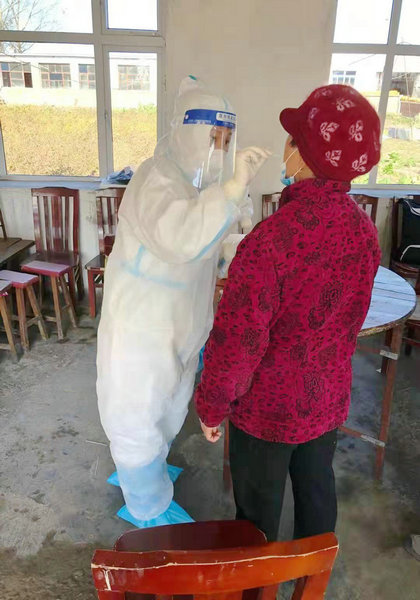 援巴医疗队员杨春娇为巴彦县百姓采集核酸