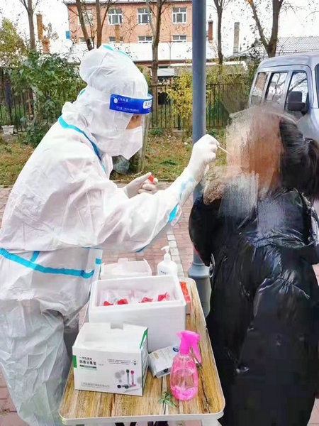 根据任务具体情况 颜红霞组长将我们医疗队分成三个小组,分别负责疫情严重的6个中风险的小区、隔离点以及配合社区上门采集核酸工作。抗疫是与病毒和时间赛跑。战胜疫情的关键是迅速找到病毒源头、病毒感染者和密切接触者,找到并迅速切断传染源。而核酸检测就是实现这些最科学有效的手段。我们抗疫小分队的专项小组就负责疫情最严重的居民小区的核酸样品采集工作。采集样品对于我们每一个医务工作者是最简单的工作技能。但要快速准确的完成传染性极强的新型冠状病毒核酸样品的采集,不仅考验我们每个人的技术能力,更考验我们精益求精的工作精神、坚强的意志和体力。