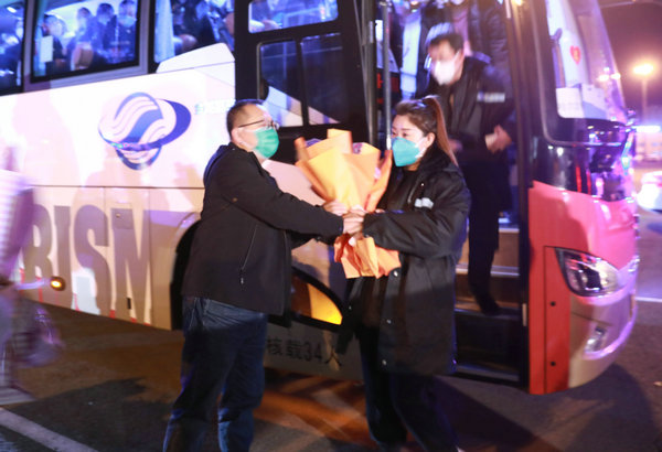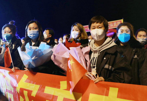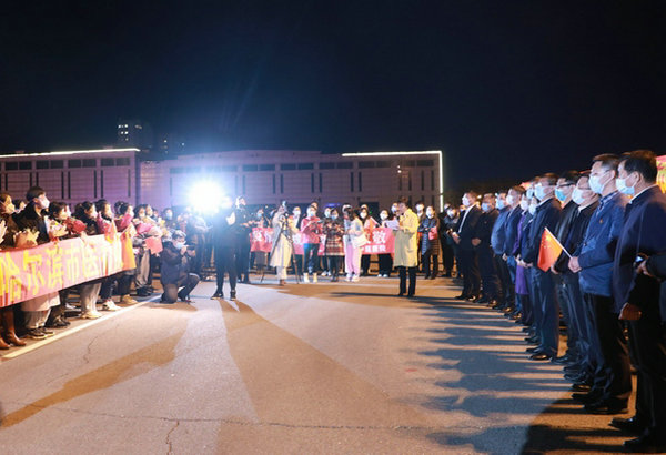 广大干部职工以及抗疫勇士的亲朋好友们热烈迎接医疗队员回家