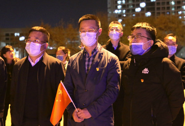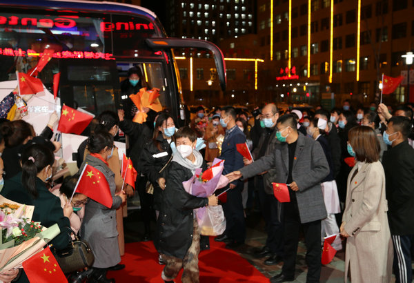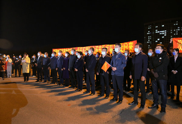 10月27日晚,齐医附属二院援巴抗疫医疗队26名队员圆满完成救治任务,平安凯旋。市委市政府、市卫健委、齐医学院在市政府办公大楼前,为齐齐哈尔支援巴彦县抗疫医疗队举行欢迎战疫英雄回家仪式,市一级巡视员刘艳芳致辞。齐医附属二院党委书记丁国旭、院长、党委副书记武立刚、副院长鲍红光、刘晖、赵玉环、纪委书记李亚洲、党委委员、人事科科长黄莹等医院党员干部群众,前往市政府迎接医院26名援巴抗疫医疗队员平安凯旋。