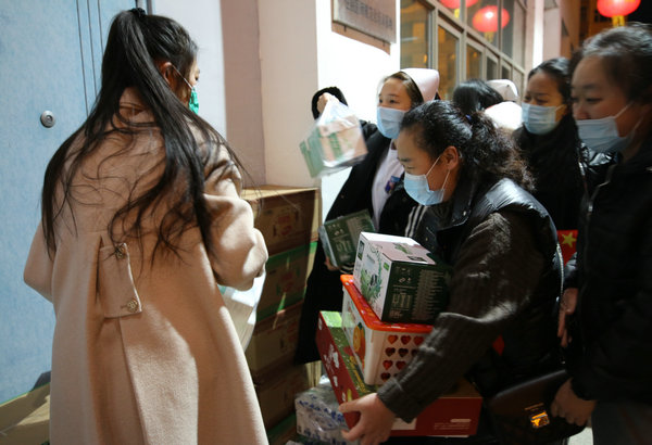 医疗队员领取慰问品