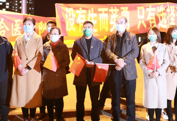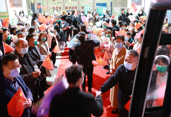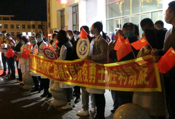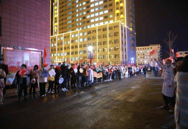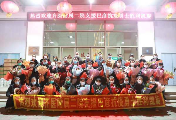 齐医附属二院党员干部群众迎接医院26名抗疫医疗队员回家