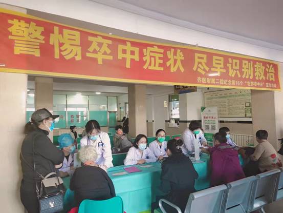 10月29日是第16个世界”卒中日”,齐医附属二院神经内科联合保健科在门诊二楼大厅开展世界卒中日宣传活动。