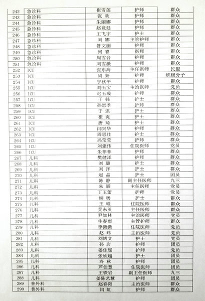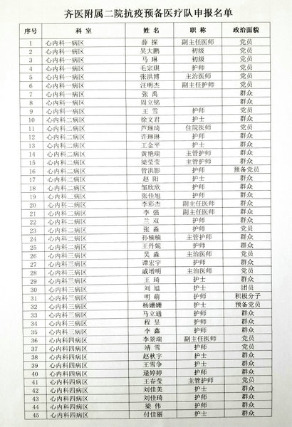 齐医附属二院抗疫预备医疗队申报名单