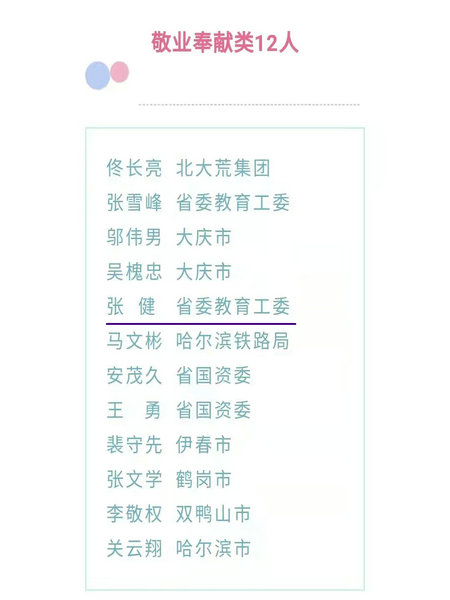 敬业奉献类“龙江好人”名单