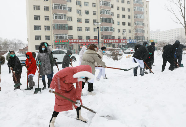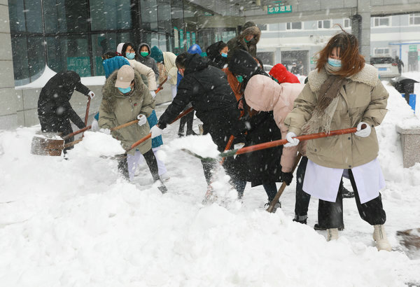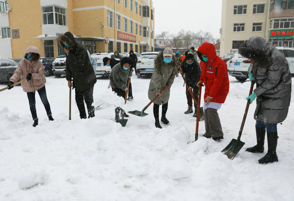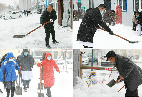 党委书记丁国旭、院长、党委副书记武立刚等领导班子带头清雪