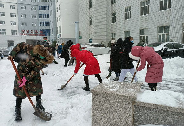 天气寒冷、大雪纷飞,但大家干劲十足,现场热火朝天。此次清雪,为医院安全工作提供了有力的保障,畅通了院内就诊环境,排除因冰雪带来的交通不便及安全隐患,为前来就诊的患者及医护人员提供了一个安全出行环境。(撰稿:宣传科 李征 摄像:宣传科 李征 总务科 朱彦海)