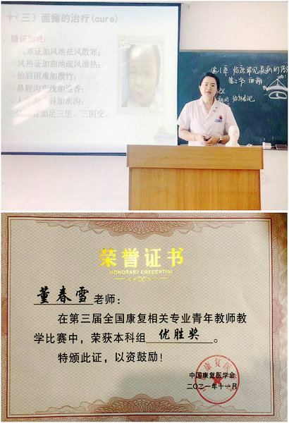 康复教研室青年教师董春雪及其获奖证书