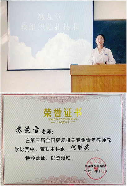 康复教研室青年教师苏晓雪及其获奖证书