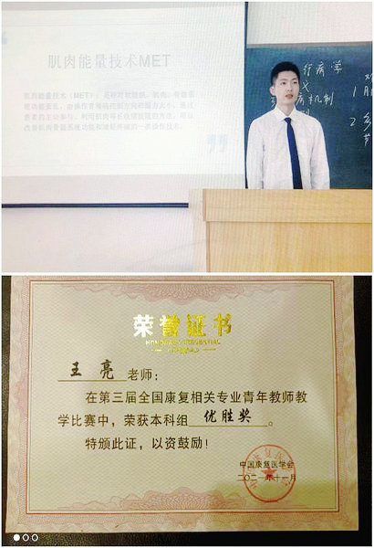 康复教研室青年教师王亮及其获奖证书